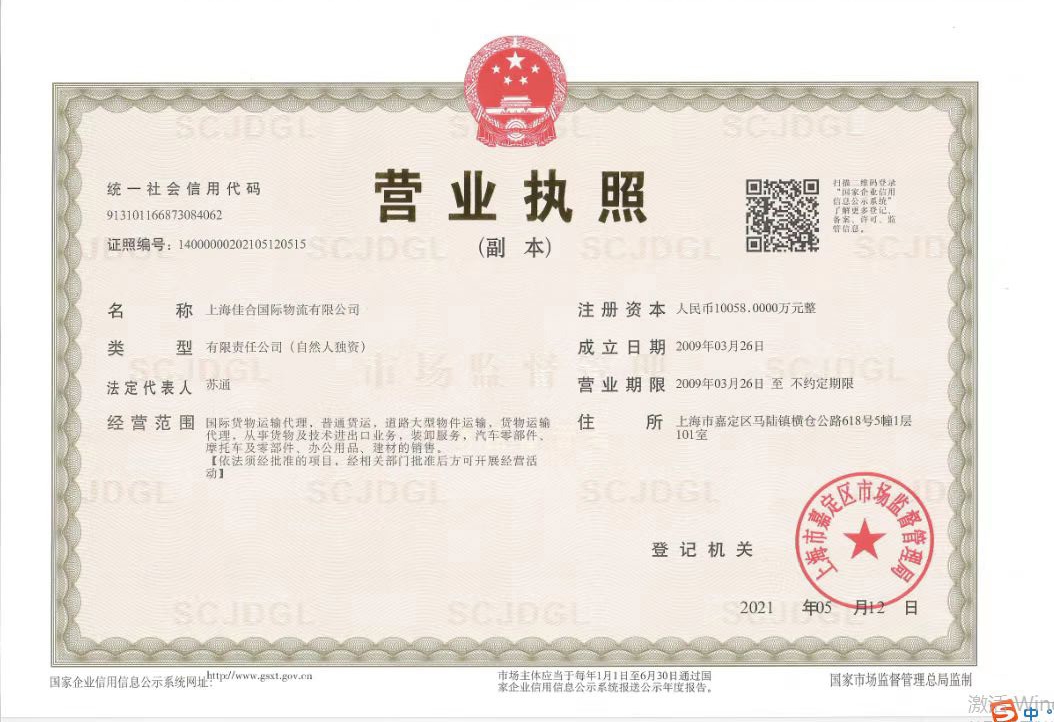 【標(biāo)題】上海佳合國際物流有限公司注冊(cè)資本10058萬,大型貨物運(yùn)輸資...查看詳情>>>